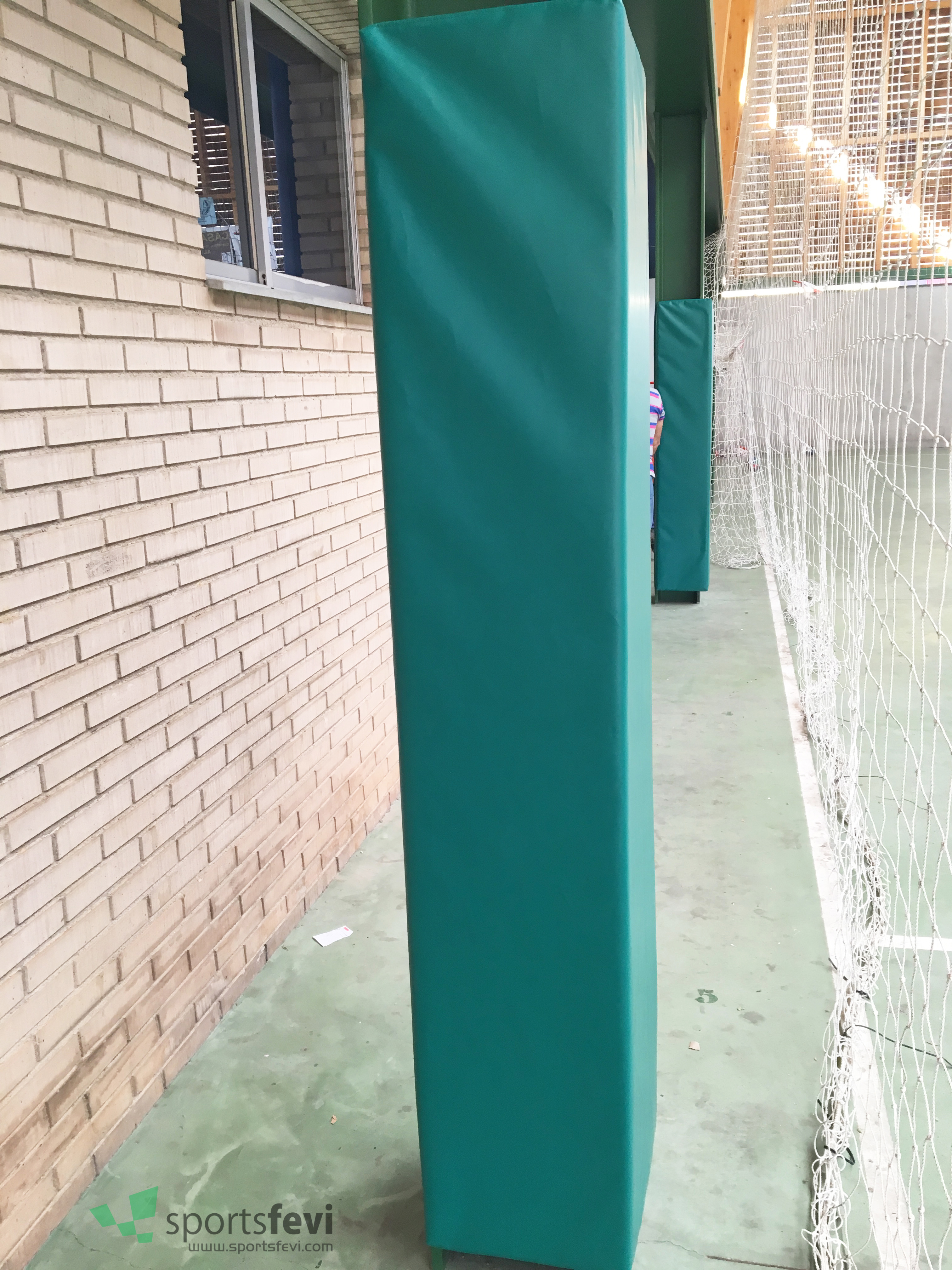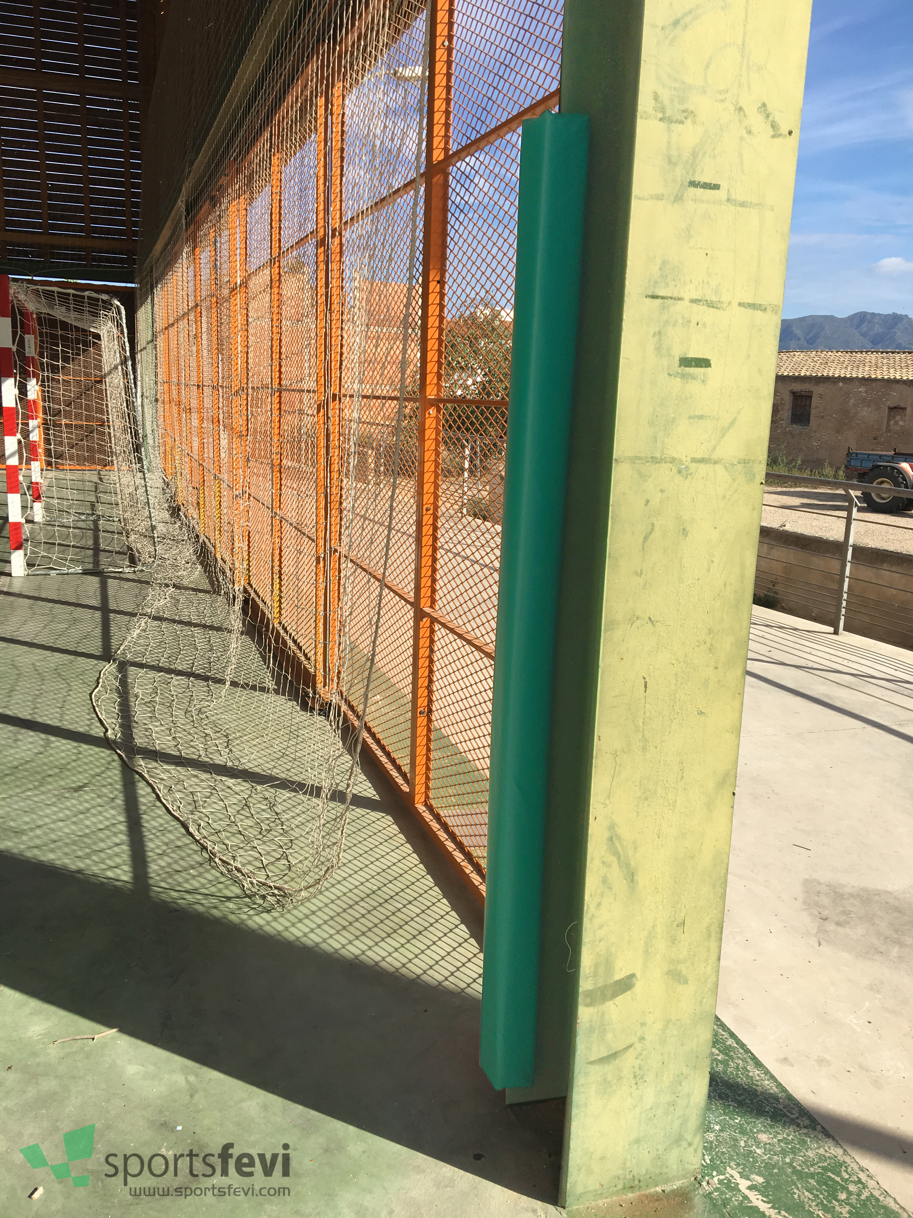 Os dejamos una muestra de nuestra tarea en el plano de protección de estructuras deportivas y escolares . En este caso el Ayuntamiento de Aldover quiso proteger los pilares metálicos de su pista multi servicios, para evitar lesiones cuando ésta se usa como pista de fútbol sala. Sports Fevi diseñó las coberturas a medida de cada pilar, adecuando densidades y materiales para una máxima seguridad y durabilidad