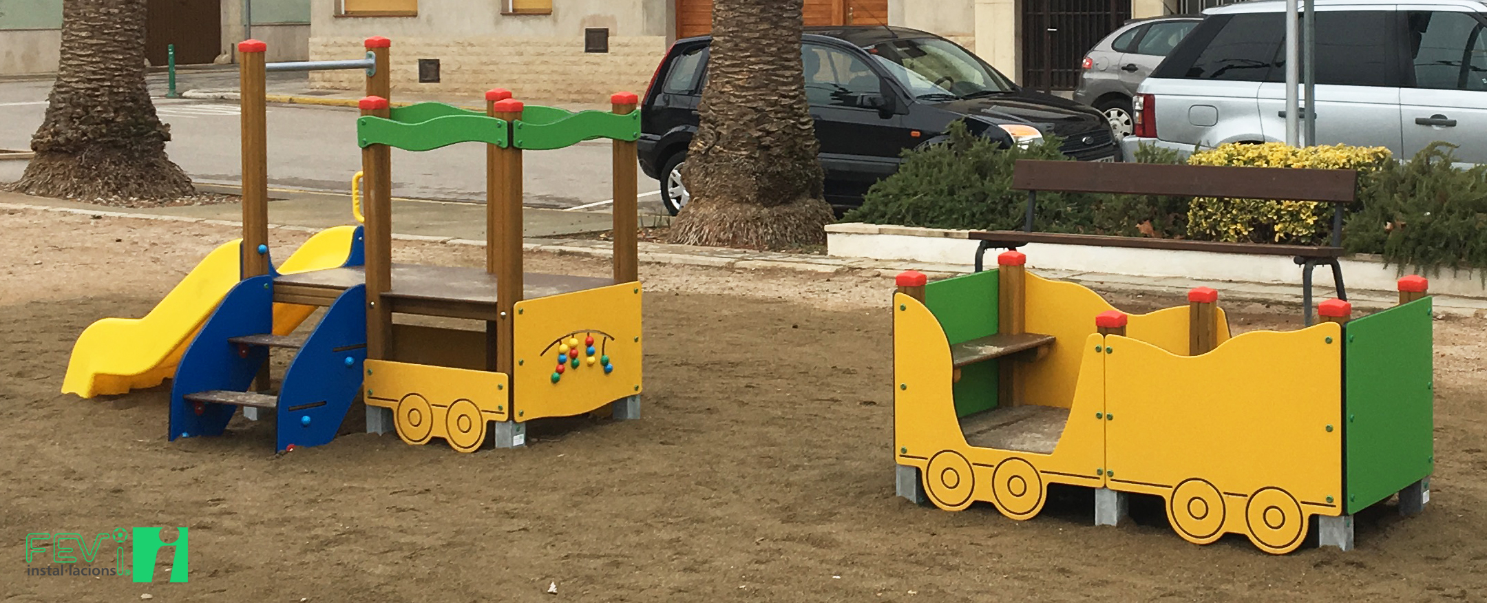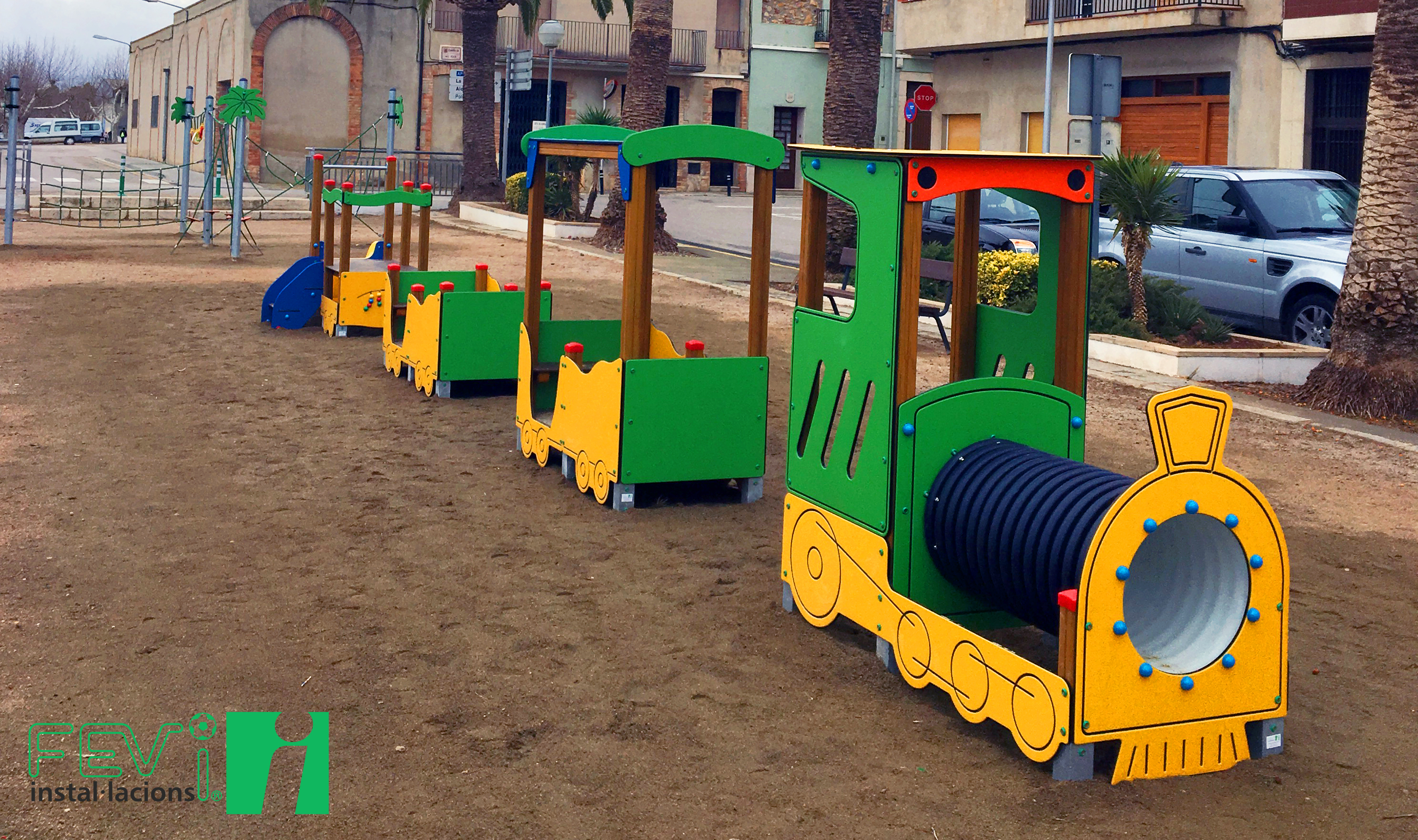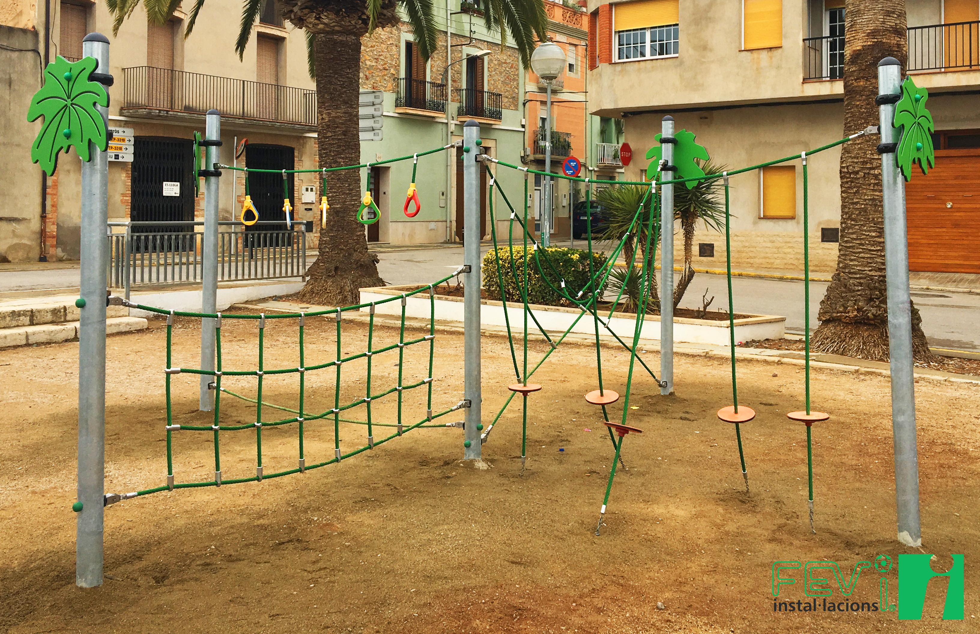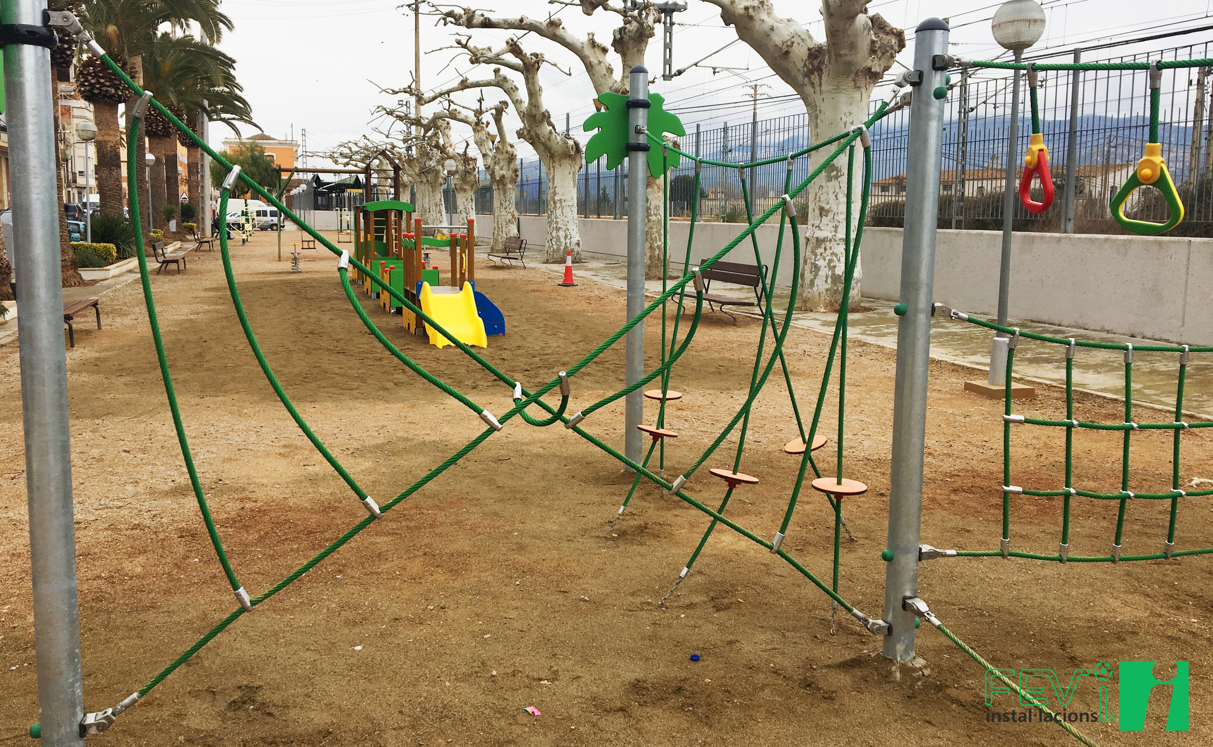 Una muestra de éstos últimos es éste nuevo parque infantil en Ulldecona (Tarragona), donde se combinan elementos como el tren “Minero” y la “Bici balanceante”, enfocando a los más pequeños, y por otro lado el conjunto de juegos de cuerda “Aruba” donde niños más mayores pueden jugar trepando y escalando de manera segura a la vez que refuerzan su desarrollo psicomotriz. Consúltanos sin compromiso en info@sportsfevi.com o al 977 50 15 55