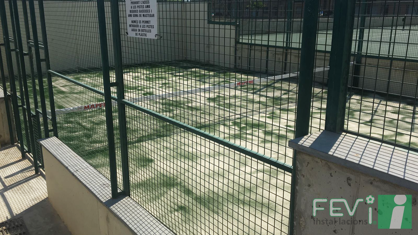 Nuestra instalación de césped artificial más reciente ha sido en el plano deportivo, sustituyendo el césped de una pista de pádel en Alcanar (Tarragona), donde se ha utilizado un césped específico monofilamento para dicho deporte, además de una carga concreta de sílice para conseguir un correcto bote de la pelota.
