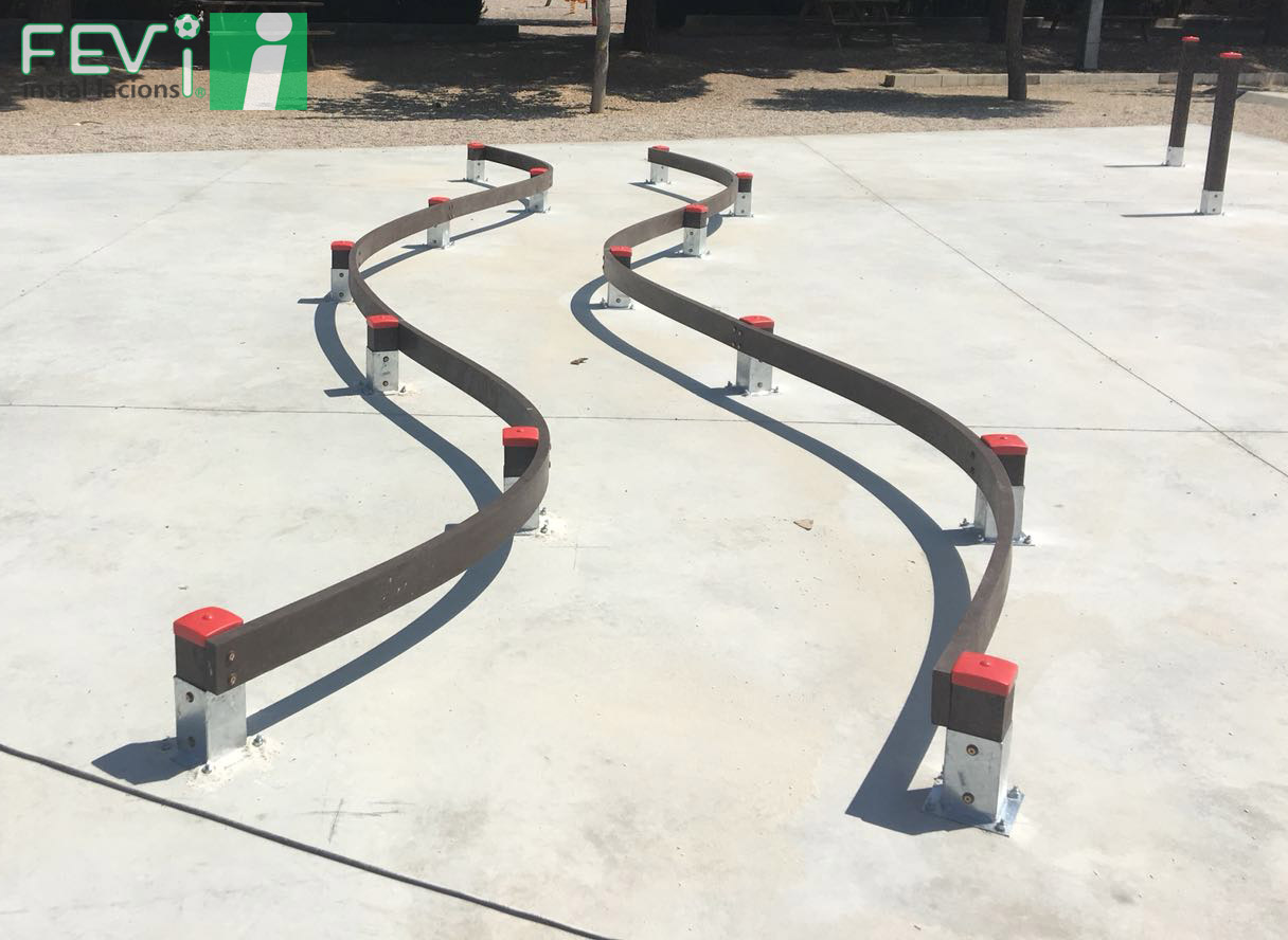 Dentro de nuestra gama de mobiliario urbano lúdico y deportivo están los circuitos de habilidad enfocados para bicicletas y monopatines, donde pueden tanto aprender como mejorar niños de todas las edades. Fabricados en materiales de alta resistencia a la intemperie, pueden ubicarse en parques, plazas o directamente sobre una solera de cemento como el que podéis ver en las imágenes, recientemente instalado en la localidad de El Perelló (Tarragona) .